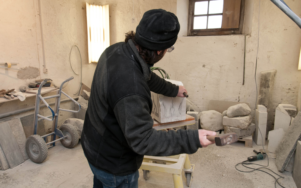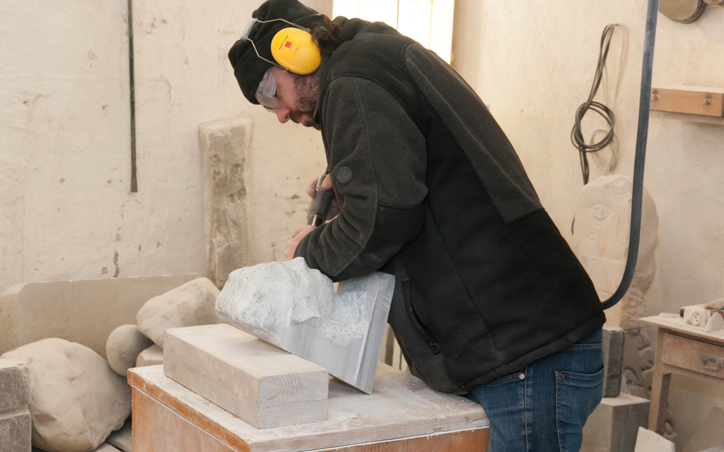 Ma passion pour la taille de la pierre est née lors de ma rencontre avec Yves Gavillet qui travaillait sur le chantier de la restauration de l’Eglise Notre-Dame de Neuchâtel.